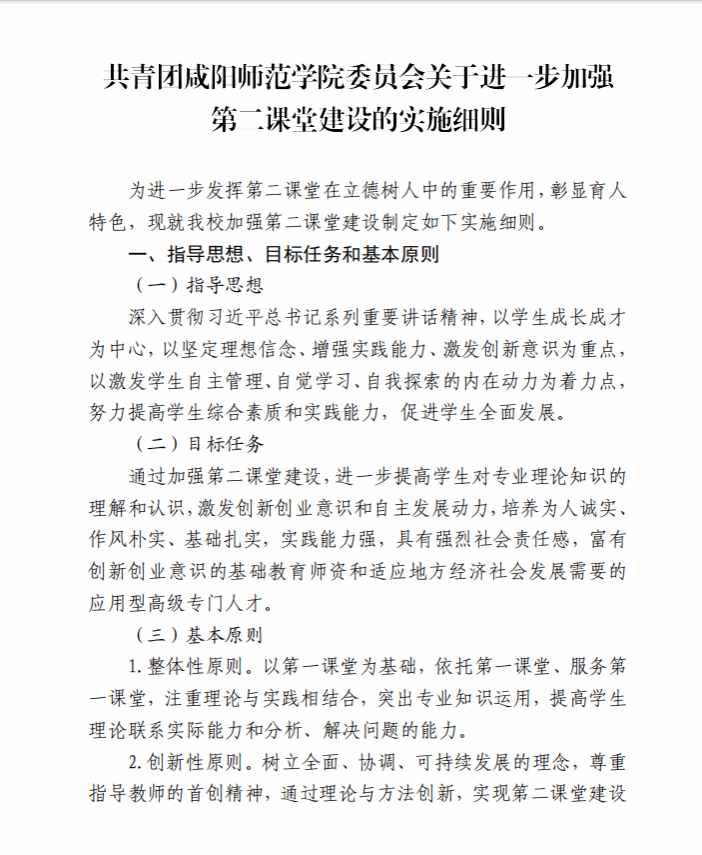 共青团咸阳师范学院委员会关于进一步加强第二课堂建设的实施细则